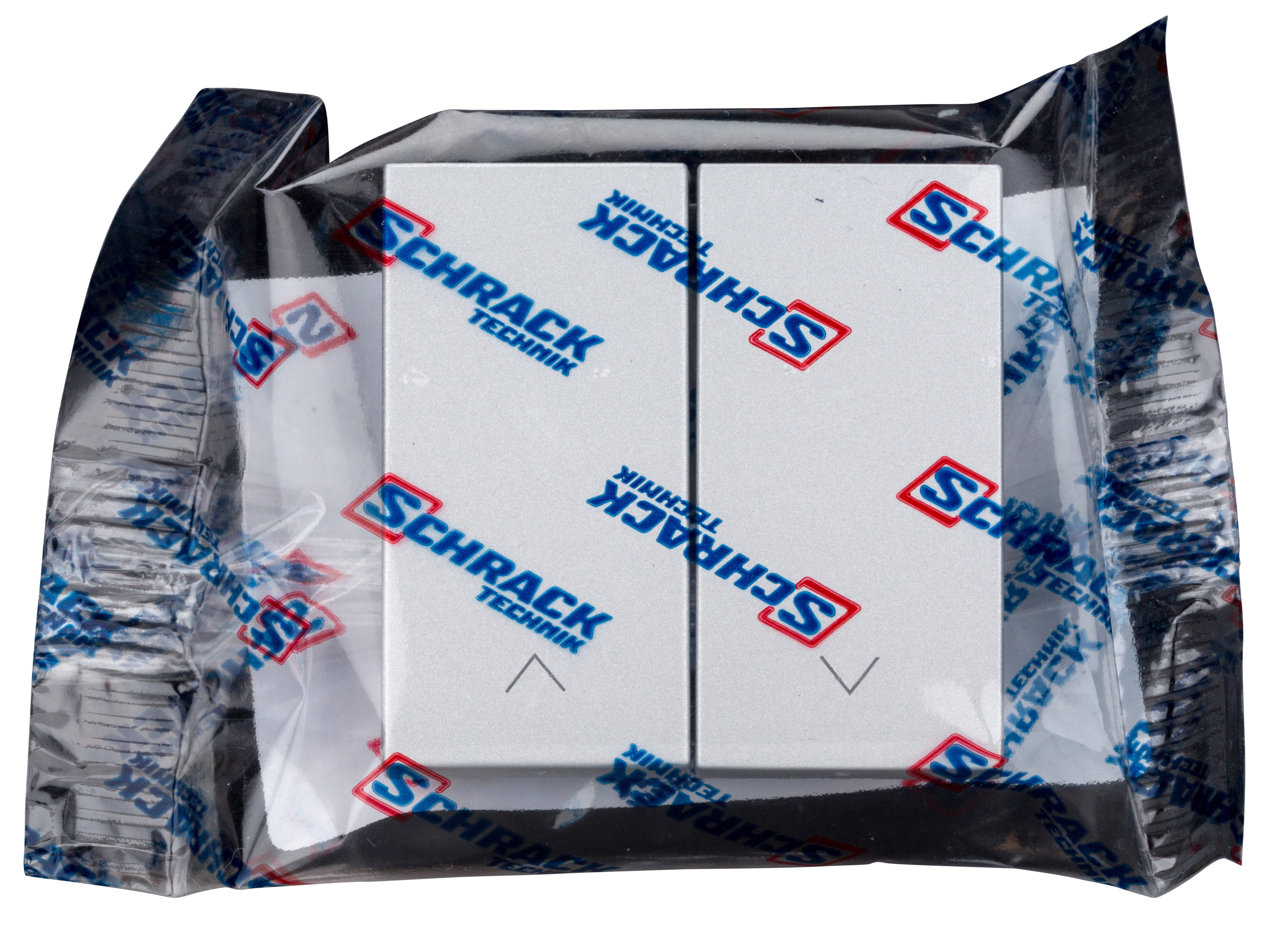 Kryt spínačů a ovladačů dvojitý, symbol šipky, stříbrný